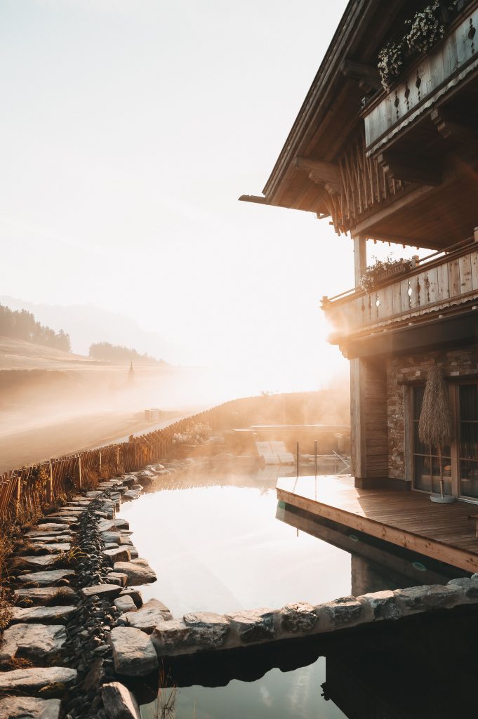 LÄRCHENDUFT LIEGT IN DER LUFT, DER TEICH PLÄTSCHERT LEISE VOR SICH HIN, DIE SONNE SCHEINT ÜBER DEN BERGEN HERVOR - DAS LEBEN SCHEINT EINFACH.